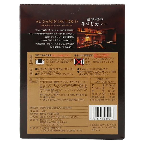 | 商品名 | AU GAMIN DE TOKIO 黒毛和牛 牛すじカレー |